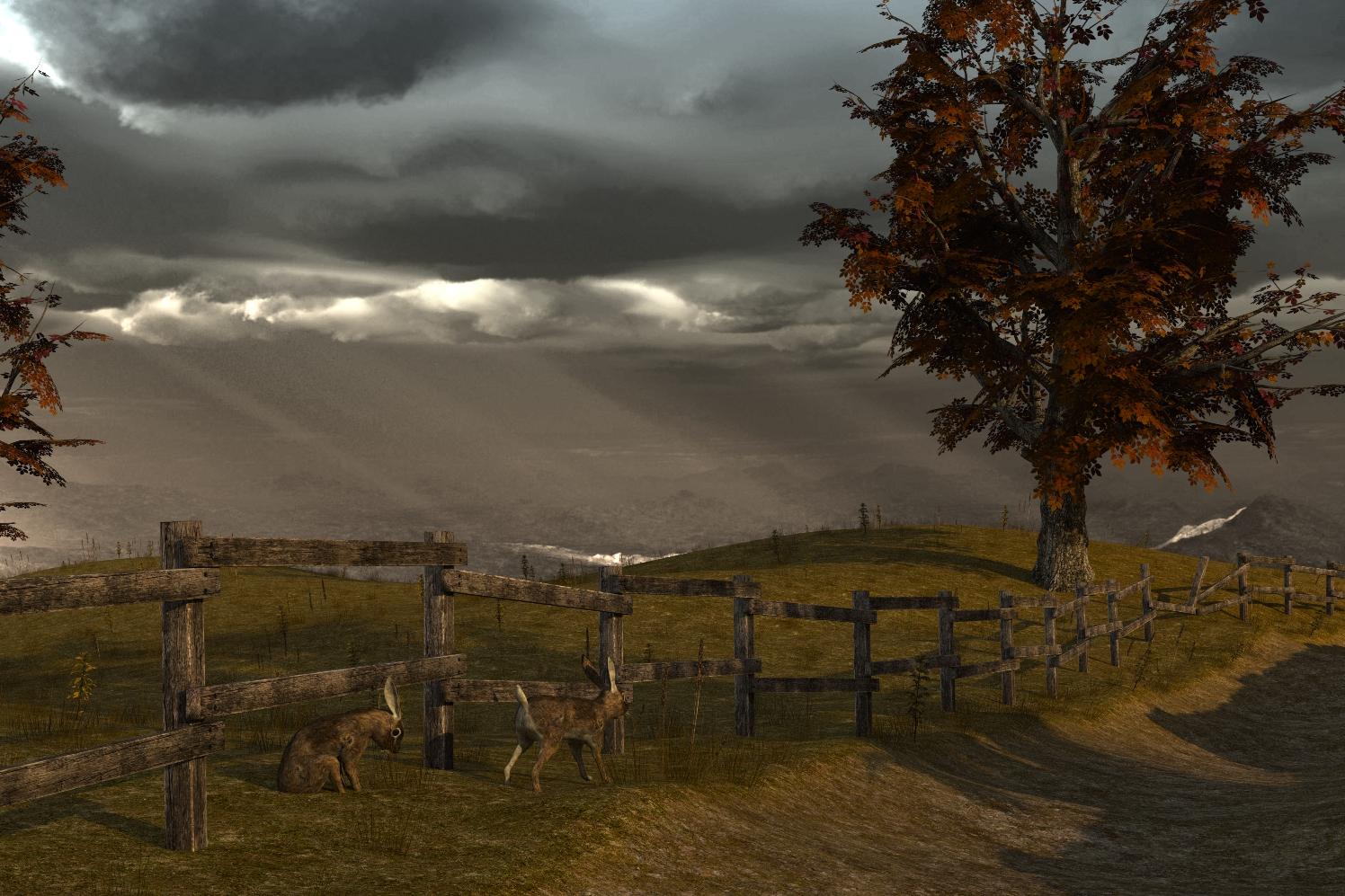 Another landscape this one using Easy Environments Autmn, tweaked the Skydome that comes with it, added a couple of Hare and set the Environment to Sun and Sky only, with a few tweaks.