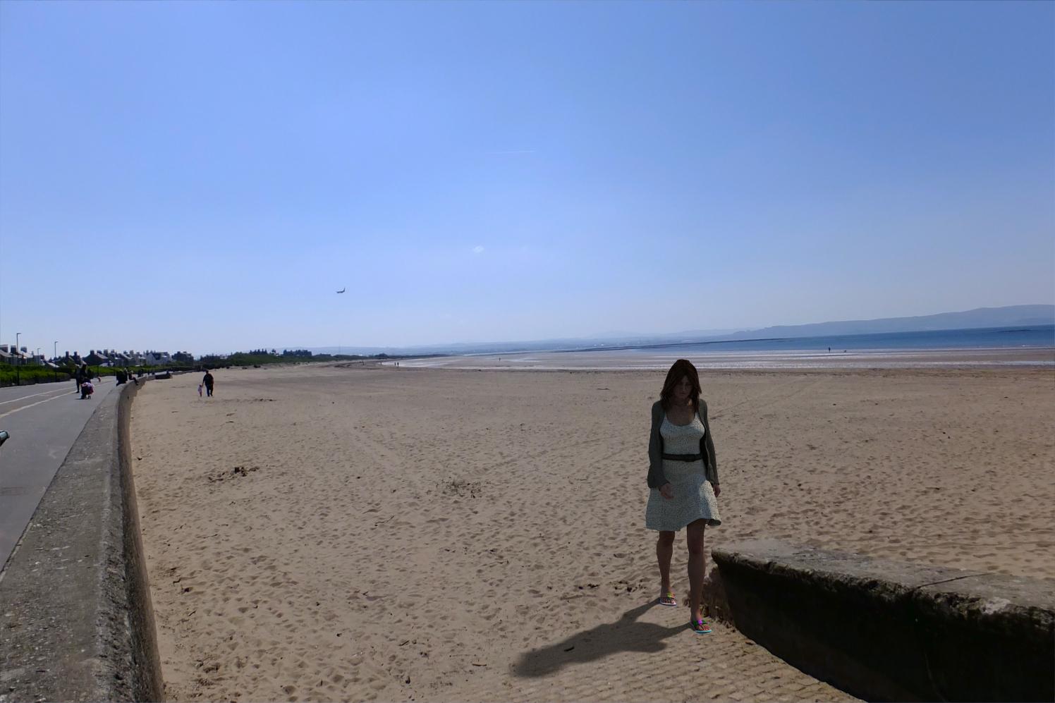 Portmahomack Beach background Genesis 2 Female, FW Joannie HD, Victoria 5 UV Set. Librarian Outfit with G2Female Flipflops and Flirty Hair