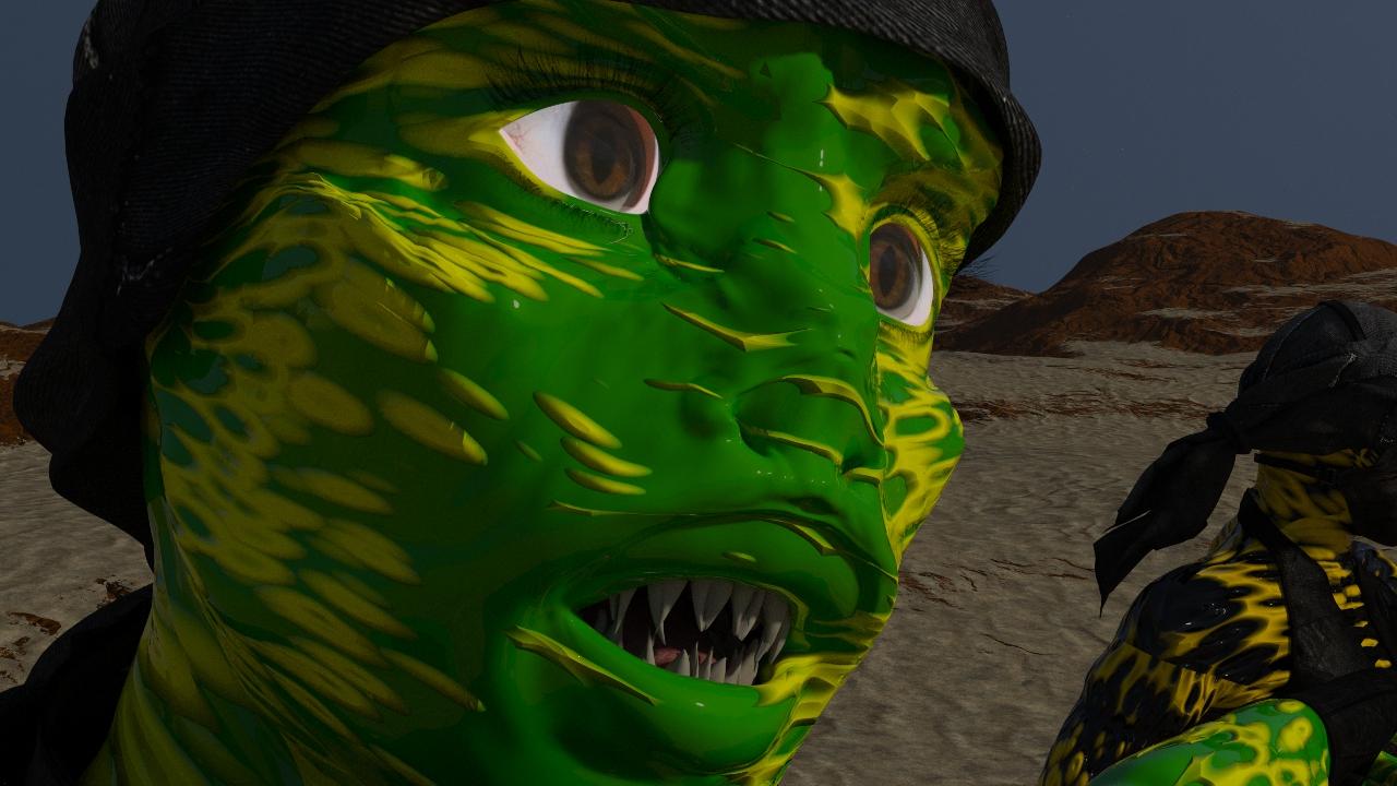 Genesis 3 Female with various Morphs dialed in and Creech Female head and body. Skin shader Noise Worley Glossy.