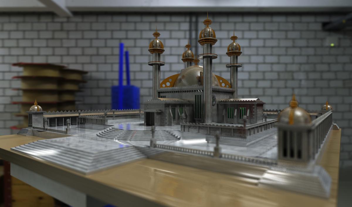 Very nice render. Though the fence looks a bit big, compared to the temple.