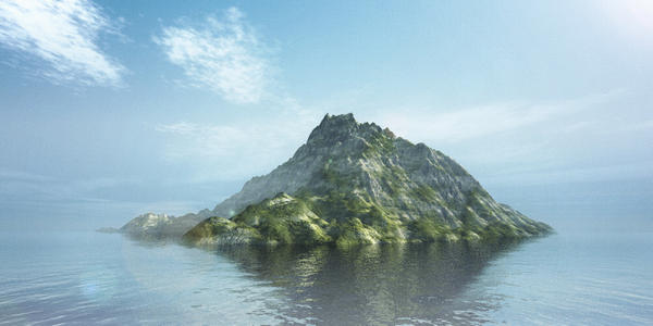 Partial sky substitution (for a gradient) - I think it came out slightly too hazy/too bland at last. And would have been easier if I had depth and island object (with reflection) map.