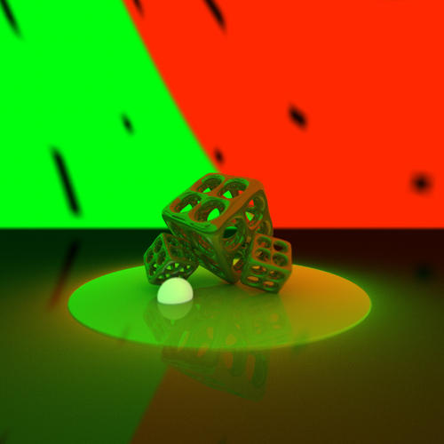 The first image is the setup I used, the camera was placed just inside the 'tube', and aimed at the large cube at the end. I used a cube so I could try volumetric mats on it.