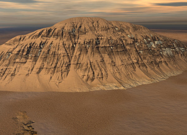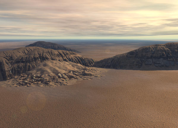 i didn't tried to use/apply an image texture to a terrain to see how or if it works very well , maybe im not so dedicated to bryce or don't know what all the presets from material lab do, David might have a tutorial how to apply a texture image or how to apply/tweak a material to a terrain.However to be honest i can tell that the default materials from bryce arent excelent or at least requires a high amount of tweaks to get a nice result close to reality .Even if are meant/created to auto-arrange according to height map, the materials ,in many cases doesn't fit very well so again you need to do lots of tweaks spending sometimes hours.Creating landscapes in bryce is a real challenge , many renders i've seen on bryce forum section are based on only objects,props .All 3D apps can't achieve great realistic results, many landscapes have increased the haze sometimes just to mask the imperfections.Another trick is to hide the terrain imperfection in front of a sunset-in this case you might not even need to apply textures/mats to the mountain/terrain .There is a haze sometimes on a landscape in real life too but its not always and not everywhere, and i don't prefer to create "smog valleys" always.The terrains painted in real time in game engines , UDK, Cry engine, Unity,whatever, are more realistic .Wish i could paint textures on terrains in Bryce :-).Bellow is a mountain sculpted in mudbox and controlled-eroded in world machine and i used the mountain for starship troopers scene.The material applied is a default one from bryce, ofc with some adjustments.The terrain with the mountain is 2048.The plain is a waterplane with same material and MORE adjustments..The scenes has the sun set to 191 and the global shadow to 100 :lol: