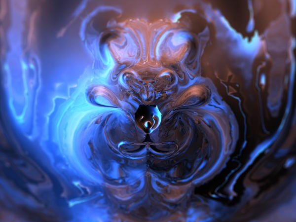 Another fairy tale world. Here in the form of a Mutant Star Dog (not a goat). The camera is inside an object made in Sculptris. The camera looks through the EWL (extreme wide-angle lens - a forthcoming product of David's and myself) creating a diagonal FOV of 300°. Lit by specularity only, which comes from an HDRI inside the object. DOF with 256 rpp.