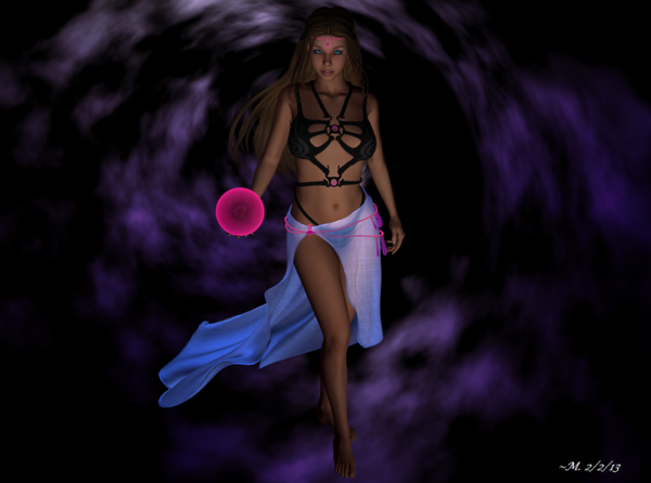 The building was made in Wings3D, the Amadillo is from the Stanford 3D Scanning Repository: http://graphics.stanford.edu/data/3Dscanrep/ them, there is also a Victoria 3 from DAZ 3D. The horizontal angle of view is around 150 degrees, the EWL fisheye lens was used. Lit by the visible light sources (included in the Bryce 7 Content Bundle 2 which has not yet been published but has been ready for 2 years), and the sun. All lights (over 100) have 20% soft shadows. Rendered premium with 36 rpp, lower left part with 256 - near the squiggle :)