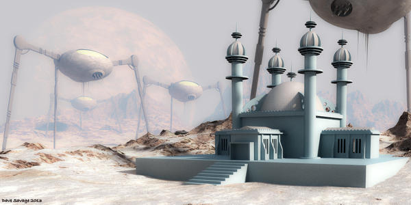 Well even though it's not finished, I did fancy doing something with it, so I've made this scene and included it... At first I was going to postwork some laser beams and explosions into it, but then I figured the threat of attack was a more powerful image than the actual attack.