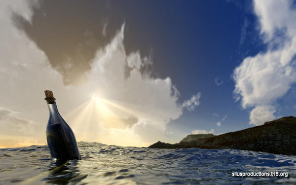 @Mr Silus: That's a bang up image. Nice job. One question I had, and I went back and look at the image again, would it be better to have the glass bottle material a bit lighter so the note can be seen? The note in the bottle is the theme of the image, after all.