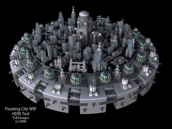 Here are some more scenes, this time from the Floating City series. The buildings are largely from the inestimable Dystopia city blocks collection, with some of my own creations mixed in. I've been periodically adding new designs over the years, though the poly numbers and memory are right at the edge of what my old machine can handle lol.