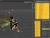 To change all lights at once, select one light in the working viewport, or scene tab, then right click on the light in scene tab and choose “select all lights”. Deselect the lights you do not want edited, lights for the rest of your scene for instance. Then adjust brightness, color, etc. to your preferences using AuxViewPort to check results. By right clicking on the light in scene tab and choosing “select all lights“, you can delete the lights and try another preset. Or you can use [drop down menu] Edit/Delete all lights. As these lights are parented to major body parts, these methods are much easier and faster than selecting lights individually. To edit the lights for a whole limb you can select the base of that limb in scene tab, then right click “select all children”.