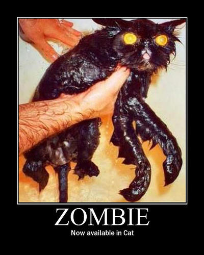 I love all of them...except the last. Jaderail, that is the scariest cat I have ever seen. Keep it away from me. Zombie, eh? Where did I put my foil hat?