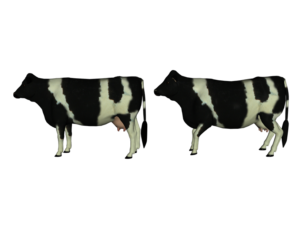 Here is what I have done just in daz so far. The cow on the right is daz's as is 'out of the box' and mine with changes is on the left.
