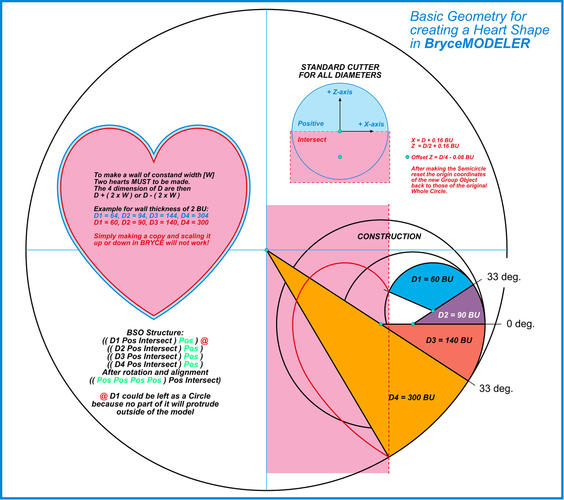 I have done a bit more work on Bryce Modeling for this heart shape. I noticed “The Savage64” had the same problem i had in making this box. Simply scaling the same heart down to use for the inside does not produce a model with walls of constant thickness. You will notice the same result in my model also. I wanted a thick wall so i can later do some engraving on it.