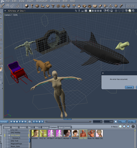 I dont know what's happened with carrara but i think there is big problems. When i try to import some of characters from dazstudio like victoria 4 or 5, carrara write "An error as occured" and stop working, this in 8.1.1 and with the last beta. I never can import a genesis character and cant find a tutorial to do this, does not work better if i try importing duf or from content menu,"An error as occured".