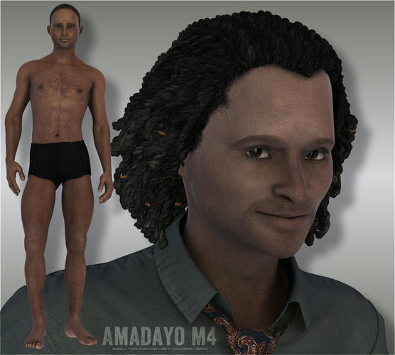 DOWNLOAD - Amadayo, an African-inspired morph that requires M4's Morphs ++, Elite Morphs, Elite Ethnic Faces, Hiro 4, and CDI's Morphus.