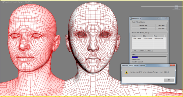 and in the third is the actual result of that script and you can see on the left of the mesh the morph which is messy, and on the right of the mesh the genesis side untouched.