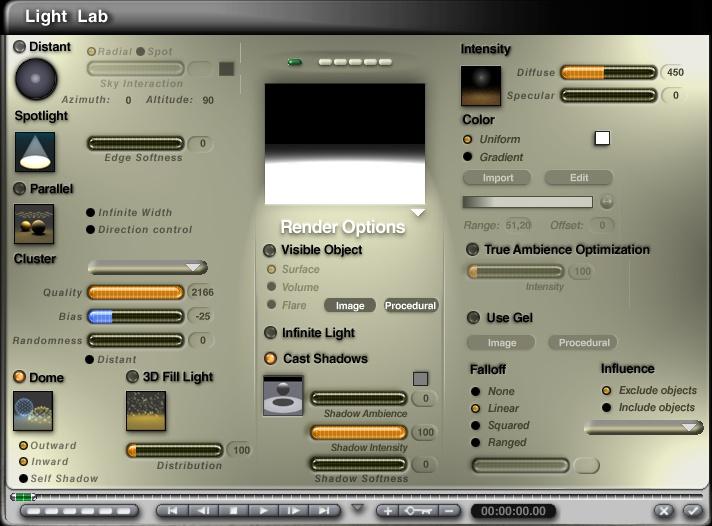 In a nutshell: the lights dome, fill (cube and sphere) that are set to TA optomization are seen as a radial (distribution can be 0, inward, outward have no effect). The only exception is the square parallel light, which is seen as a rectangular sheet with both sides lit, Y size can be set to 0, infinite width and direction control have no effect.