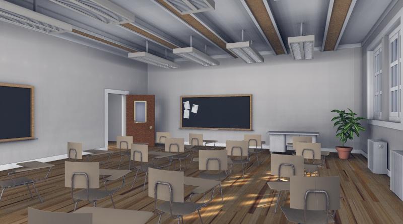 Slepalex - you may be right about the brightness of the room. Rashad set up a challenge in his last comment on the previous page https://www.daz3d.com/forums/discussion/142591/rashad-s-thoughts-on-lighting-in-bryce-7-1-pro-in-2017/p6 to light this room with TA. I did not question the brightness of the room just took up the challenge and try to emulate his scene with TA. TA does indeed spread colour sometimes a bit far, even more so if Boost Light is enabled. On the other hand, without TA there is no spread of colour at all. So we have two opposing effects and neither is completely natural. In my experment, the walls take up too much colour from the floor. Without Boost Light they stay grey and all the colours in the room have much less saturation. The table tops in Rashads example seem a bit bright to me, in your example, the back of the chairs seem a bit bright, considering the only light comes through the windows on the right, and in my last render the white teachers desk is much too bright. Rashad's scene rendered on my computer in 93 minutes, my last in 28 minutes, both 800 x 445 px.