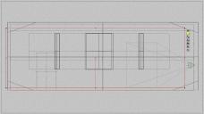 Here we go again. I rotated the beams, window and the door frames by Z=0.001 to get rid of the "alignment-bug". I found a light assembly left-over that I deleted. Then I still had a hypertexture shadow capture sandwich on the floor I forgot to delete from earlier experiments. I added two 2D faces with reduced transparency, one between floor and the lower flattened cube parallel light and one between the ceiling and the upper ligh sheet. With them, the brightness of the floor and the ceiling can be balanced. The upper face looking down and the lower face looking up is considered by TA to light the walls. Render time is now 30% (256 rpp), file size 58% and memory usage 53% of Rashad's original.