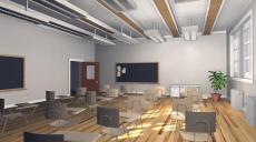 The reason the desk tops are so bright In the original rendering is because there ARE lights active within the fixtures overhead. It is not obvious from this viewing angle but if you look directly upward you will see there are tube shaped lights active. They are 3D Fill Lights elongated into the shape of cylindrical bulbs. The result is that they automatically provide rather diffused key light as well as soft shadows onto the desks beneath. The overhead light fixtures are an entire tutorial on their own, but we'll get to that in a bit.