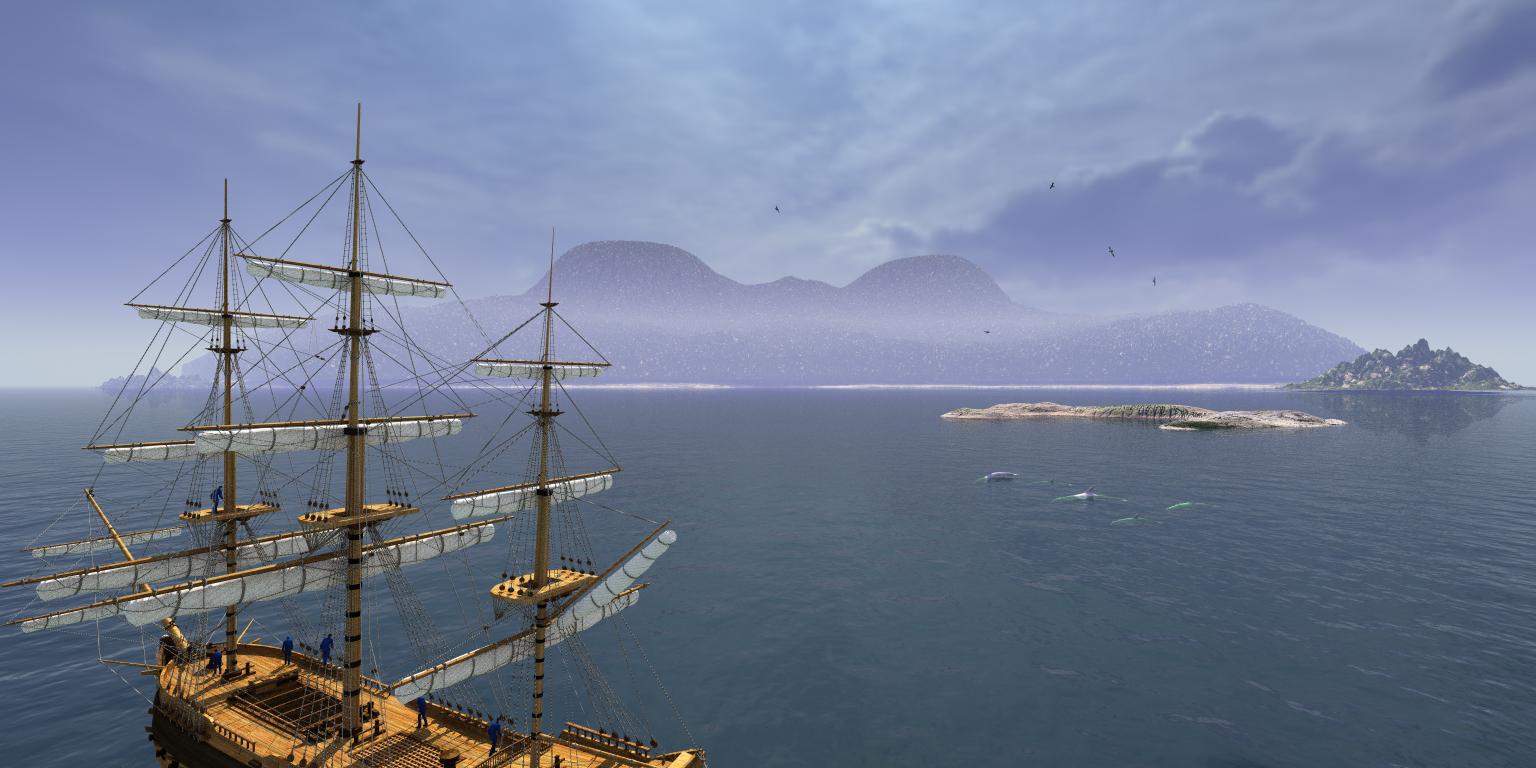 I used Faveral's lovely Warraok Kitt model, based on a Breton merchant ship but actually not entirely dissimilar in shape and rigging to HMS Resolution, which was a recommissioned Whitby Collier. The sky and lighting is one of Horo's Sunless HDRI Skies.