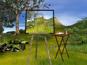 @slepalex... You know, I looked at my scene and wondered the same thing about no shadows... This was my second attempt at this image... In the first I had a different sky with a different Sun placement... and there were plenty of shadows... I didn't continue with that particular image as I had the easel slightly angled , rather than straight on as is in my final image... and as the picture was being placed within the picture within the picture etc... the images were difficult to place accomodating the angle of the canvas so I started all over again with the one I entered...and the canvas was straight on..