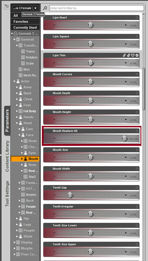 The problem is that I can't find where a certain morphs comes from, It's called Mouth Realism HD and it looks like this in the parameters tab:
