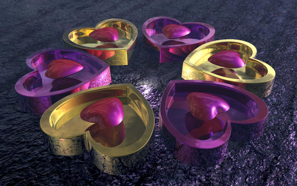 The first picture is the last render i did for the Heart Shape Theme [ http://www.daz3d.com/forums/discussion/14116/ ]. These are Bryce Ambient Painted Maps converted to Symmetrical Lattice [Levitated Pillow Hearts] and Terrain [Box Hearts]. They are perfectly smooth and can be made fully reflective. I did this for Pam. I don't know why. Pam probably does not even like this kitchy hearts stuff. But here it is. I wish that David had the scene file because i know he could turn this into something magical. 10 hours to render and 62,915,073 polygons. Well it would be that many polygons if these were imported mesh objects.