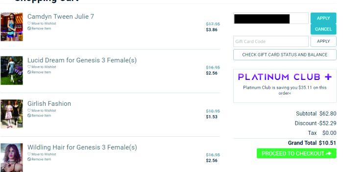 So those total $16.76 Need a $3.24 item or more. (I bought Awesome Anime Eyes to do toon renders. It's mix and match- Those three came to 11.75, or $3.91 each.)