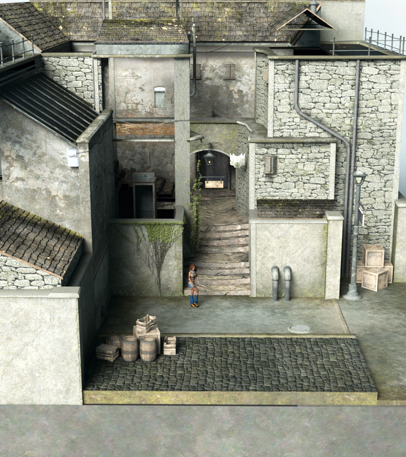 Has anyone reviewed Thieves Alley? It looks like its just one soild prop with no way to hide any of the parts (other than geometry editor or using iray section plane), which I'd rather not do, if possible. Can anyone verify?