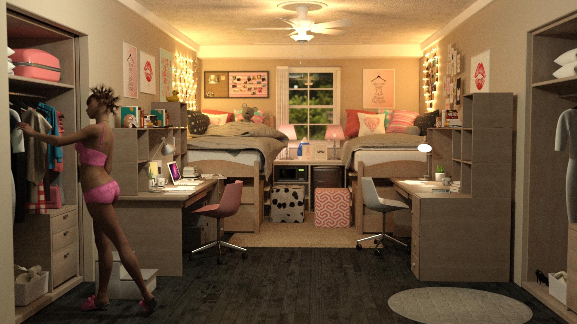 I bought the College Girl Dorm Bundle yesterday and thought I'd share my experience. First I have to say I think the bundle is really nicely priced, basically giving you $3 off on the room and props together and throwing in the poses for free. The bundle product also comes with two extra preload scenes. So far so good.