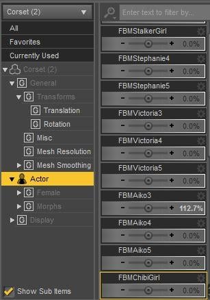 The MFD textures work on all MFDs. The corset was an interesting surprise. You can't fit it to Aiko, but you can parent it, and it has FMBs for her and every generation that can wear on MFD. What a nice surprise!