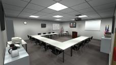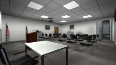 Here's a few renders of The Briefing Room, a product released in 2013. Although the promos mostly show it in use by the police, it is a very versatile room for any type of modern meeting: business, civic, church, school, or learning center as it has a projector, flat screen TV, whiteboard, copier, and several other props (this is the room that contains the cabinet I recently wrote a rigging tutorial about). In addition, it has several different table/chair configurations. This predates Iray so you'll have to come up with a way (like ghost lights) to light an enclosed interior.