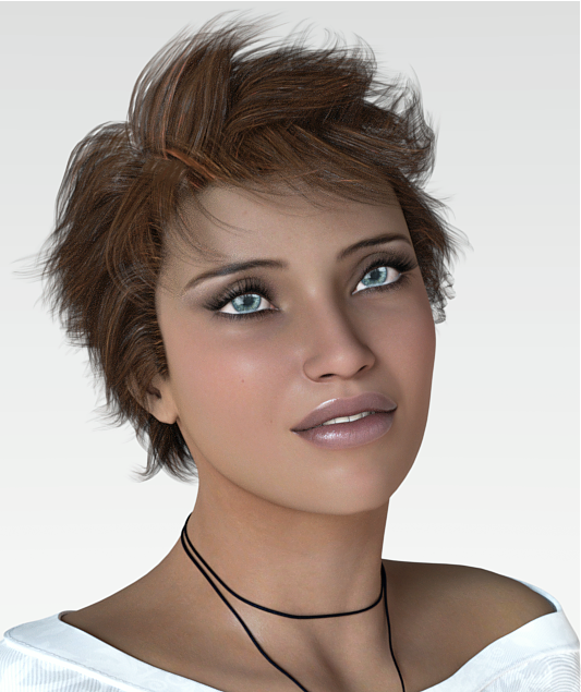 Blast from the past, a Genesis gal for you! It's Mayda, from Sabby, from Rendo, I hadn't tested Genesis in awhile and wanted to see how the expressions and poses were. Very stiff compared to Genesis 2 and 3. So I UberBased her to get Iray, added a bit of reflectivity to get a tad more shine, and put on Micah Hair, which I really like as a short hairstyle. And hey, it's for the Genesis 2 guys and gals too!