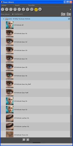 Below are the image of V5 Nichole material options available in Poser.