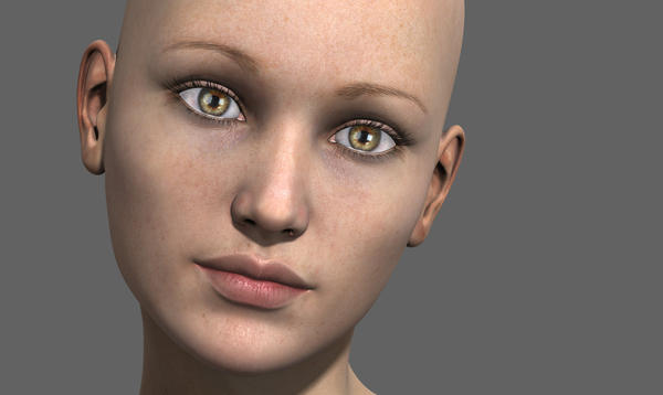 Here's a quick render showing the tattoo. Sorry you can't really see the eyes, but I was really more interested in playing with the lights to get the skin to look right. With just a simple default distant light, the skin was rendering way too dark. I think I've got a decent balance here, but I know I have a LOT to learn about lighting.
