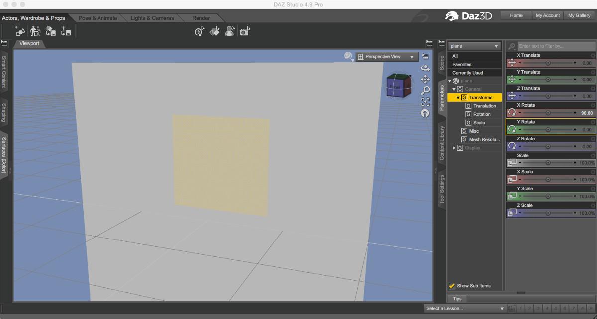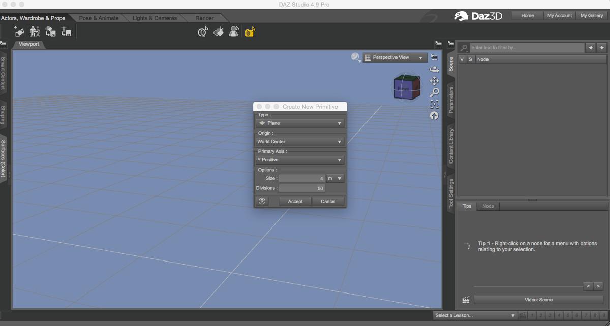 then I added a plane from the top menu Create->New Primitive and set the dimensions (Size and Divisions) that Linwelly suggested.