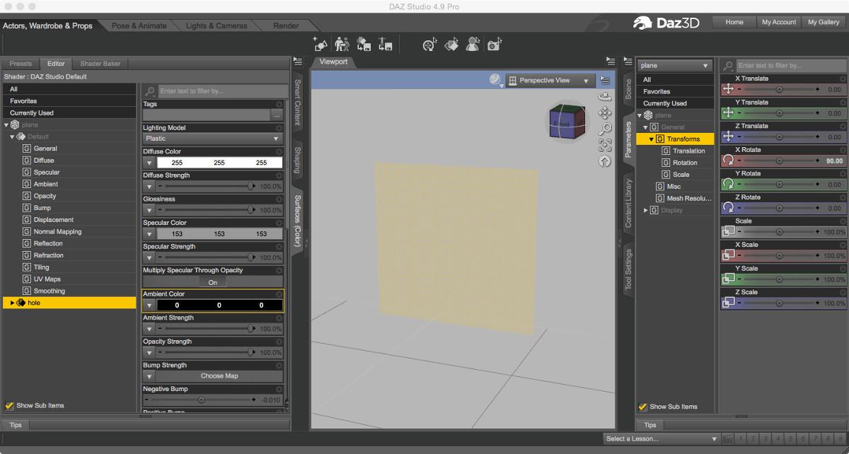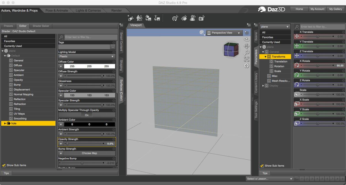 Then in DS load a plane, rotate it so it stands upright or at whatever angle you need, usually along the x axis, then load your black & white image in the opacity channel.