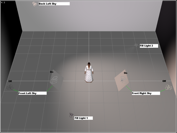 Sky (Spot light 5) 1 back top left corner for body and hair edge light effect.