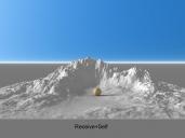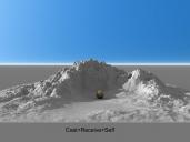 Was the task that a mountain range does not cast a shadow on the tree instances in the valley (sphere in Fig.). But the mountains have to take shade from the trees. At the same time, the ridge must provide their own shadow in the valley. Except the sun, the scene should lit with "Sphere Dome Light" and HDRI.