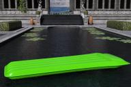Solution - bottom line - set comes with a sky dome.   That sky dome was the "roof" that I was seeing when I zoomed out of the scene. (Thank you, Barbult).   I compounded my confusion by setting the environment lighting to "scene only."   As per Barbult, I have now unchecked visibility for the courtyard pool skydome to turn it off.  I used a different HDRI for the environment and changed back to Dome and Scene in the render settings.  I did a test render of just the set and the raft.  I stopped it very very early, less than 10%.  It is clear that everything is looking much better.