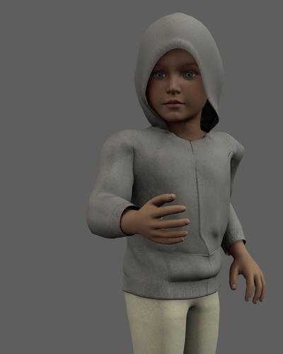 It's not rigged yet (since it's for K4, I'll be rigging it in DS3...not going to be quick). No textures/bump/displacement yet. I'm planning a fully zipped, hood up morph and including Realistic, Thin and Heavy FBMs (no Chibi or Toddler).