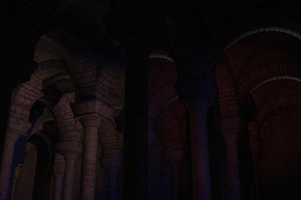 Just remember that UE2 Intensity set too high will wash everything out.  Just use it as a fill light, or ambient light, to bring up the lighting, but most of your light will be coming from the distant and spot lights, linear point lights, etc.  A scene like this is a good background start.  The lighting will increase a little more when lighting a figure in the scene.  This would lend itself well to a fire or glowing magic with a linear point light.