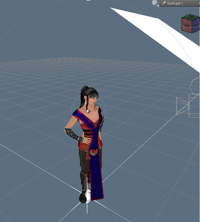 18.  Add another spotlight.  Select it in the scene tab and rename it to Spotlight RIM.  Click on it in the View Selection Menu.  The rim light should be off to the side of the figure.  If it is slightly behind, the effect is smaller, and becomes larger the more it is angled towards the front of the figure.