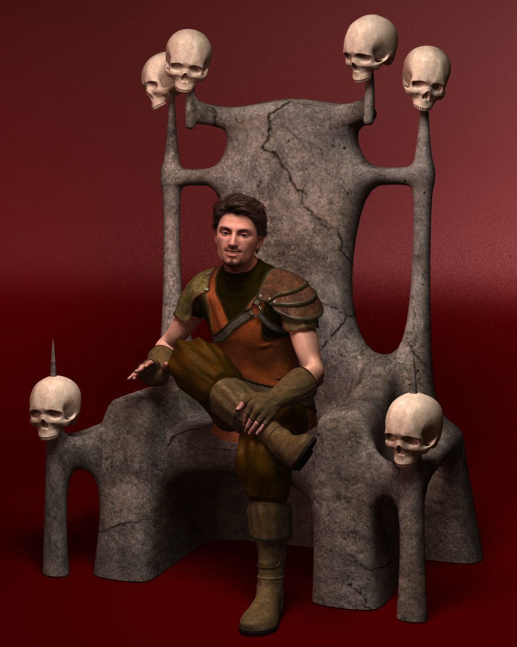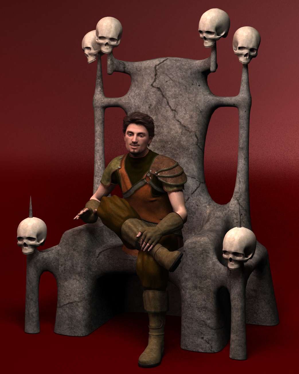 This is a fun render!  So, spooky throne, guy with a friendly smile... is he a good guy or a bad guy?