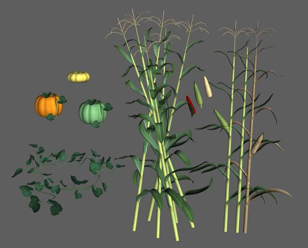 Field crops I would like include wheat, barley, millet, and rice. It would be great if each could go from seedling to immature crop to mature grain.