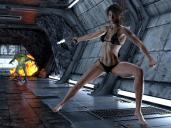 The sex robot - our last defender -  almost all the lighting comes from the actual lights and flames that are part of the scene.