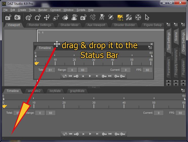 So my next question is now this: Do I have to dock the bars across the top and bottom in the same manner? Or do those bars remain in place? I do know that the best place for the Animation related tabs is the bottom of the Viewport Window; but as I don't normally do animations, I don't really need that in a permanently docked position. So If I want to use those features, I only have them docked for the duration of the work I am doing along those lines. The same is true for the other side tabs I rarely use. That however is going to change soon, as I have some of my own models that I wish to rig for use in DAZ Studio, and I want them to have moving parts! To be successful at that, I am in need of a more complete explanation of rigging a product, and getting DAZ Studio to permanently Memorize the rig, so that they can be offered up for sale.