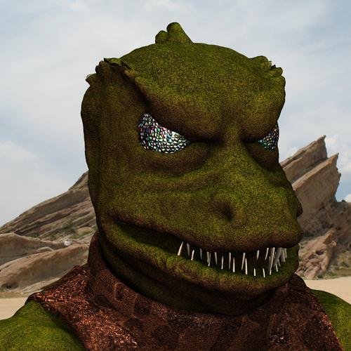 The Gorn head itself is a (seemingly abandoned) "work in progress" by XCalPro which I tweaked a bit with "magnets" to widen the skull and narrow the jaw. It's a pretty dang good likeness, but insanely polygon heavy for its purpose, 54,000 triangles not counting the eyes or teeth.