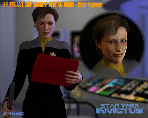 After being accepted into Starfleet Academy, Verdan discovered her aptitude in the field of engineering. She graduated in the top 1 percentile of her class and was assigned to the U.S.S. Sovereign. While aboard the Sovereign, she quickly gained a reputation as being brilliant, but, a little too quiet. Some felt that she'd never possess enough self-confidence to tell a higher ranking officer that something couldn't be done, even when it clearly couldn't.