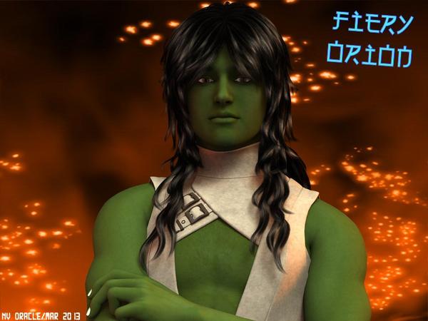 The background and lights was from the Fiery Victoria/Genesis tutorial that comes with Studio. The character is M4 with Mylochka's Orion texture. The hair is Spring Princess from DAZ's store (just an FYI, it comes with a morph for M4 that fits it just as pretty as you please), and the outfit is Notorious for M4, from RuntimeDNA.